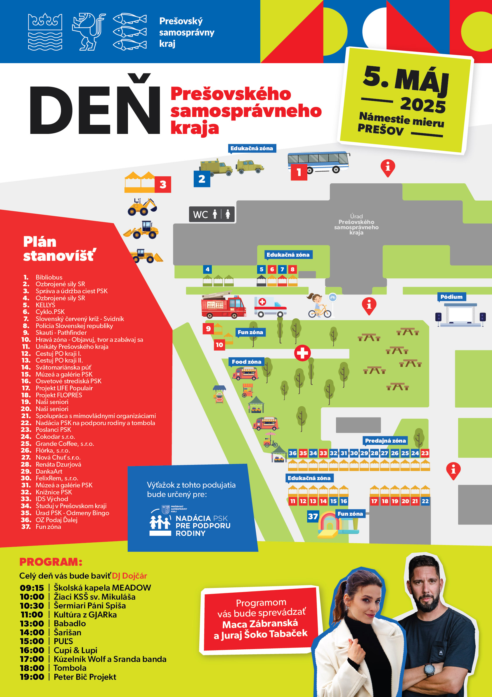Programom vás bude sprevádzať Maca Zábranská a Juraj Šoko Tabaček. Celý deň vás bude baviť DJ Dojčár.