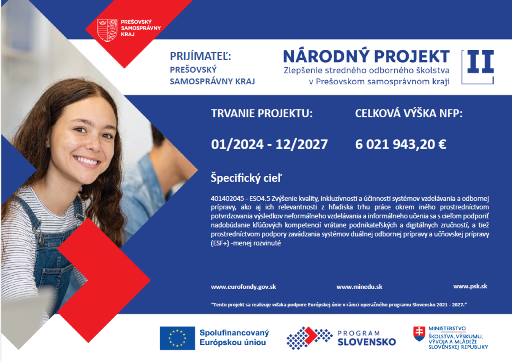 | Projekt s názvom: | Zlepšenie stredného odborného školstva v Prešovskom samosprávnom kraji II |