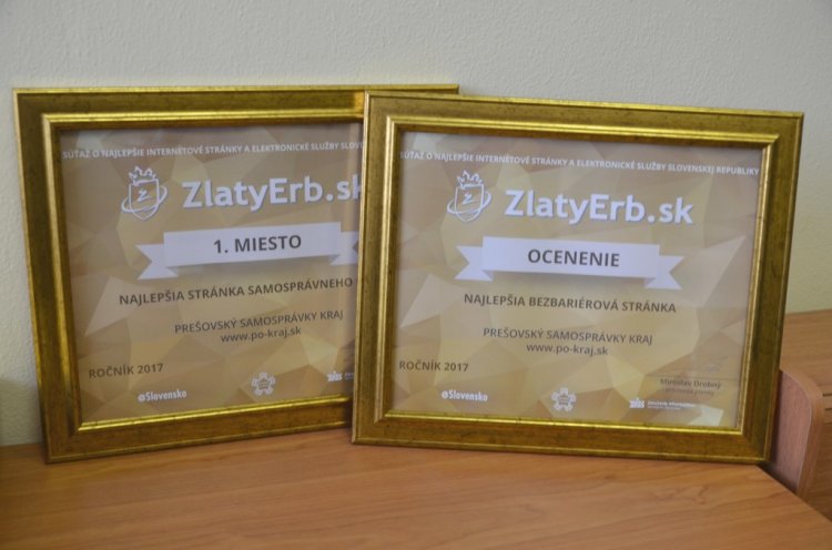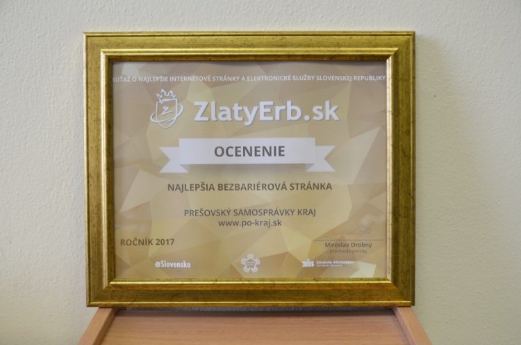 Prešovský samosprávny kraj nadviazal na sériu zlatých ocenení z posledných ročníkov celoslovenskej súťaže ZlatyErb.sk. Z aktuálneho 14. ročníka si odniesol prvú cenu za Najlepšiu stránku samosprávneho kraja a navyše aj špeciálnu cenu za Najlepšiu bezbariérovú stránku samospráv.