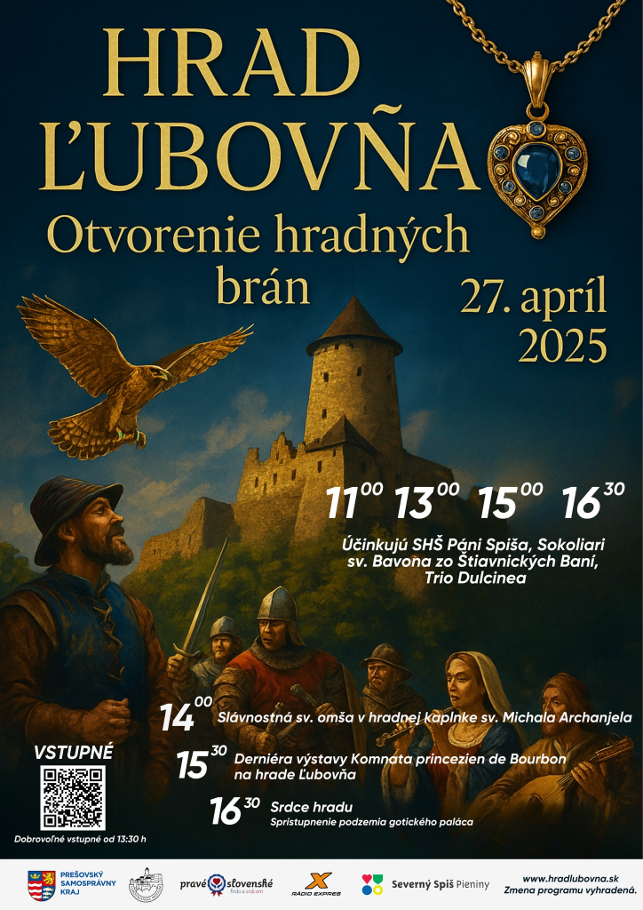 Ľubovnianske múzeum – hrad v Starej Ľubovni pozýva verejnosť na svoje otvorenie už túto nedeľu 27. apríla. Návštevníkov prenesie dobou šermiarov a kráľov. Tešiť sa môžu na šermiarske súboje, sokoliarov a na program na nádvorí, ktoré ožije farbami a zvukmi stredoveku. Popoludní je na hrade naplánovaná derniéra výstavy Komnata princezien de Bourbon a sprístupnenie podzemia jeho gotického paláca.